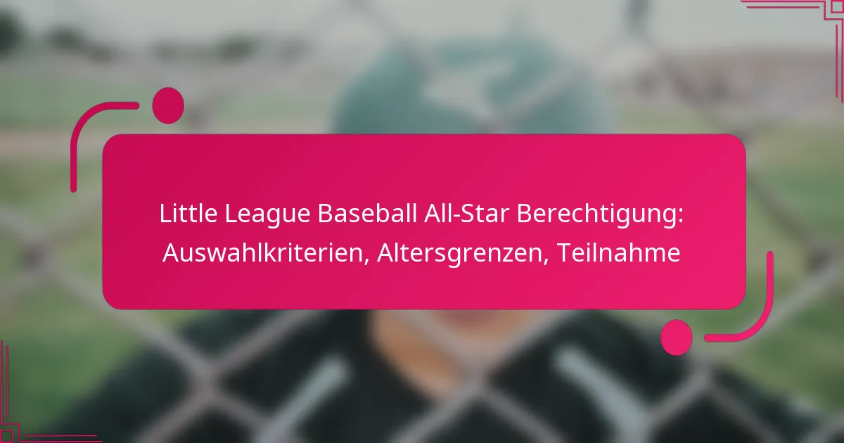 Der Auswahlprozess für die Little League Baseball All-Star-Teams umfasst die Bewertung der Spieler anhand spezifischer Kriterien, Altersgrenzen und Teilnahmeleitlinien. Trainer spielen eine entscheidende Rolle in diesem Prozess und sorgen für Transparenz und effektive Kommunikation während des gesamten Verfahrens.