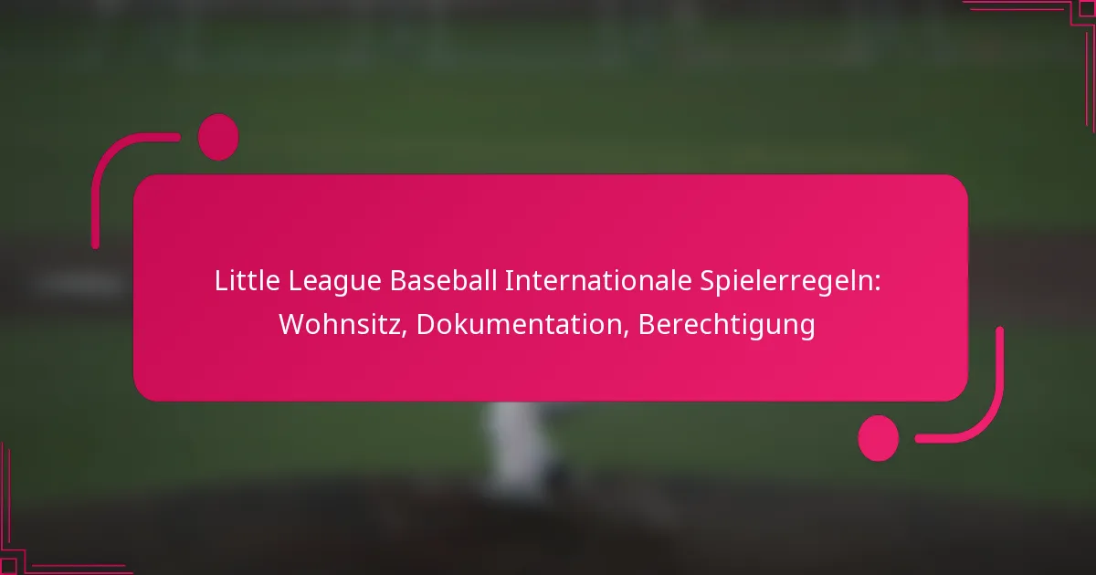 Die Little League Baseball hat spezifische Regeln für internationale Spieler bezüglich Wohnsitz, Dokumentation und Berechtigung festgelegt. Um teilzunehmen, müssen diese Spieler innerhalb definierter geografischer Grenzen wohnen und die erforderlichen Dokumente vorlegen, um ihr Alter und ihren Wohnsitz zu verifizieren. Dies stellt sicher, dass alle Teilnehmer entsprechend ihrem Alter und Standort in die richtigen Divisionen eingeteilt werden, wodurch die Integrität der Liga gewahrt bleibt.