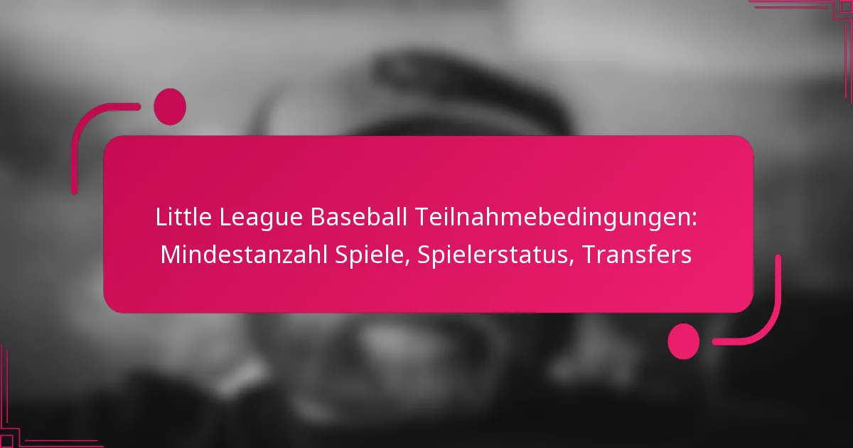 Die Little League Baseball hat spezifische Teilnahmebedingungen, die verlangen, dass Spieler an einer Mindestanzahl von Spielen teilnehmen, um während der Saison spielberechtigt zu bleiben. Wichtige Faktoren wie Alter, Wohnsitz und Teamauswahl bestimmen den Status der Spieler und stellen die Einhaltung der Ligavorschriften sicher. Darüber hinaus ermöglicht der Transferprozess den Spielern, die Teams zu wechseln, was ihnen die Möglichkeit gibt, die beste Passung für ihre Fähigkeiten und Interessen zu finden.