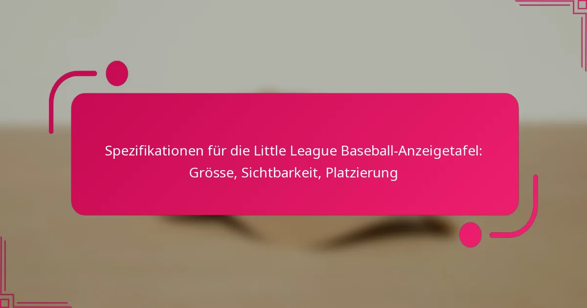 Die Anzeigetafeln für Little League Baseball sind mit spezifischen Spezifikationen entworfen, um Sichtbarkeit, Haltbarkeit und die Einhaltung der Ligastandards zu verbessern. Wichtige Überlegungen umfassen Größe, Materialien und Displaytechnologie, die alle zur Effektivität der Anzeigetafel beitragen, indem sie Informationen an Spieler, Trainer und Zuschauer übermitteln. Eine richtige Platzierung ist ebenfalls entscheidend, um sicherzustellen, dass die Anzeigetafel aus verschiedenen Winkeln und Entfernungen während der Spiele gut lesbar ist.